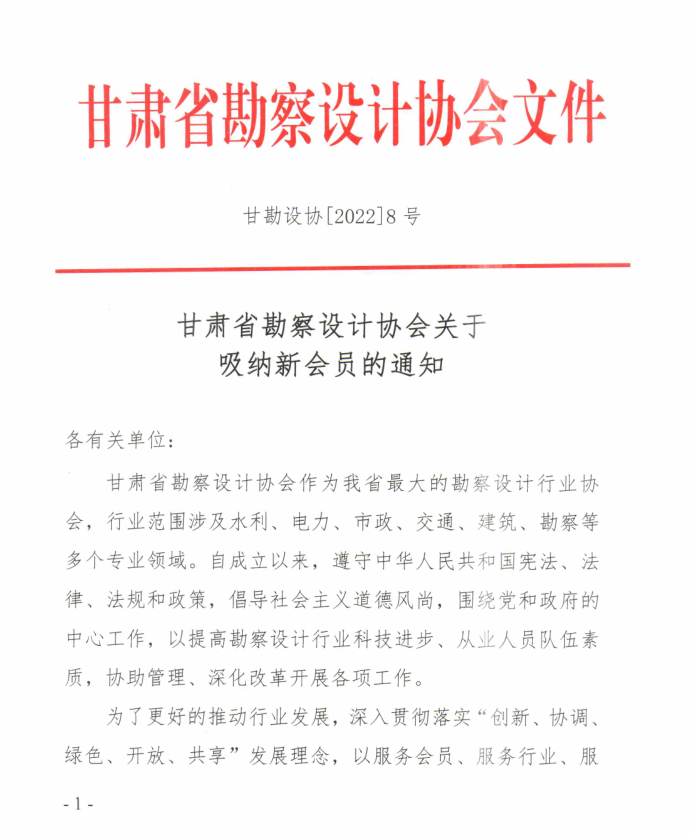 甘肃省勘察设计协会关于吸纳新会员的通知