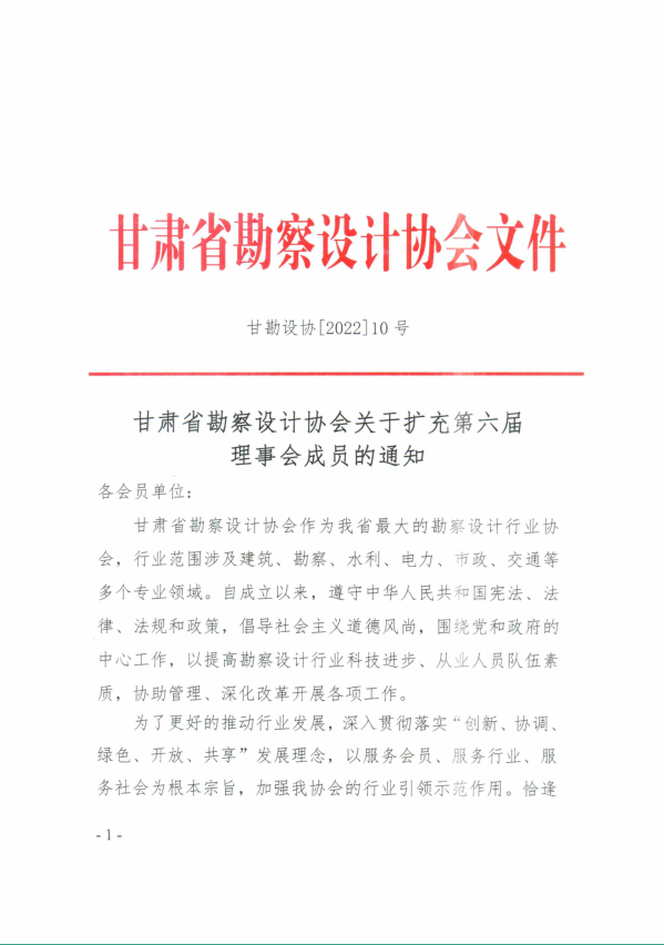 甘肃省勘察设计协会关于扩充第六届 理事会成员的通知