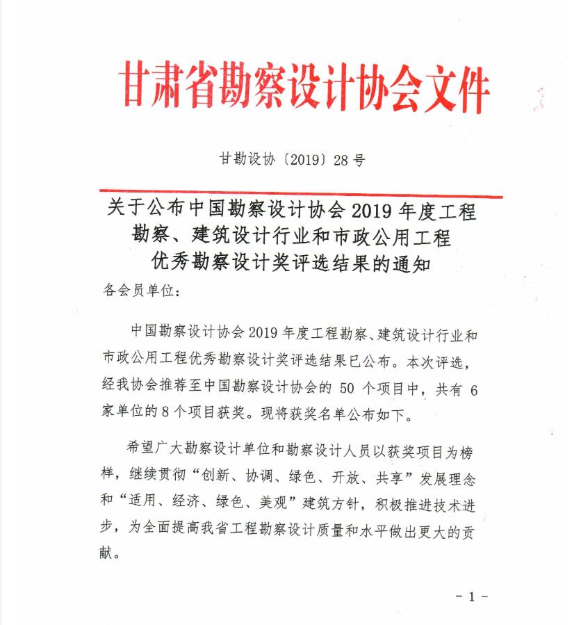 关于公布甘肃省勘察设计协会2019年度 先进单位、先进个人、先进工作者名单的通知