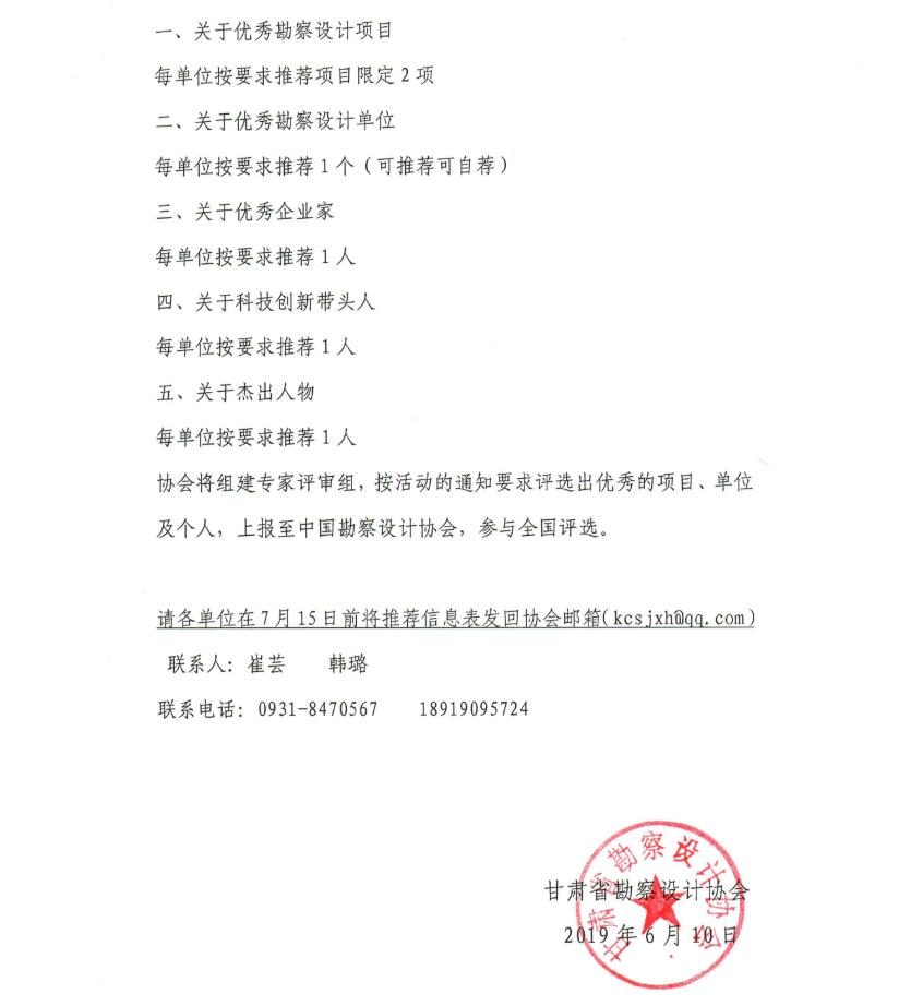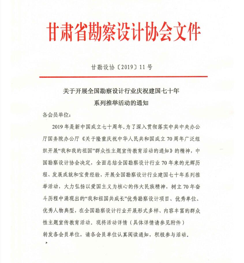 关于开展全国勘察设计行业庆祝建国七十年系列推举活动的通知