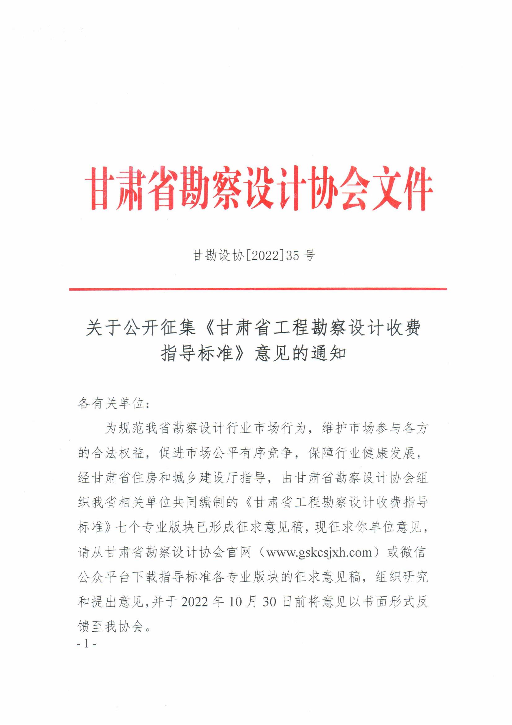 关于公开征集《甘肃省工程勘察设计收费 指导标准》意见的通知