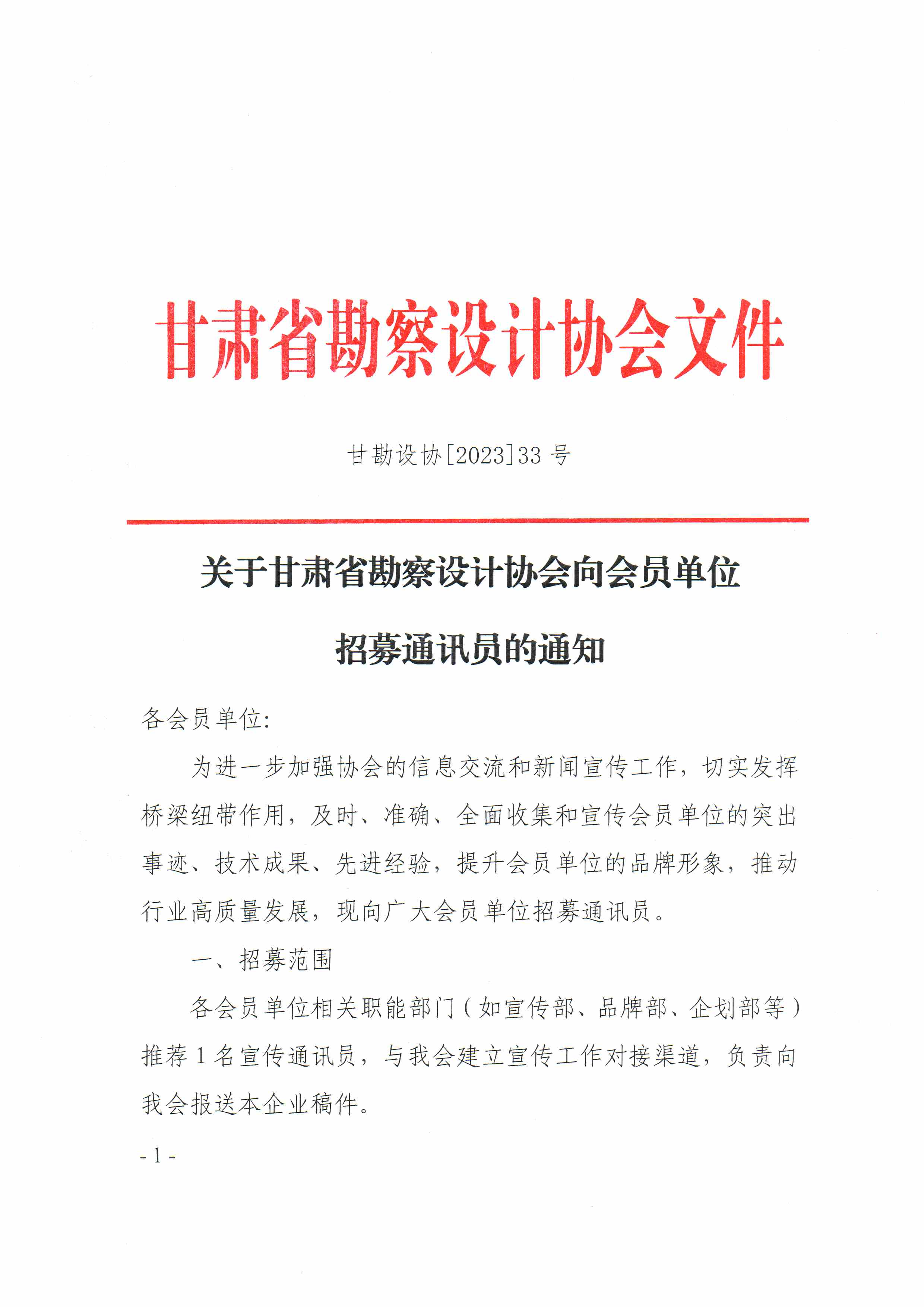 关于甘肃省勘察设计协会向会员单位招募通讯员的通知.PDF