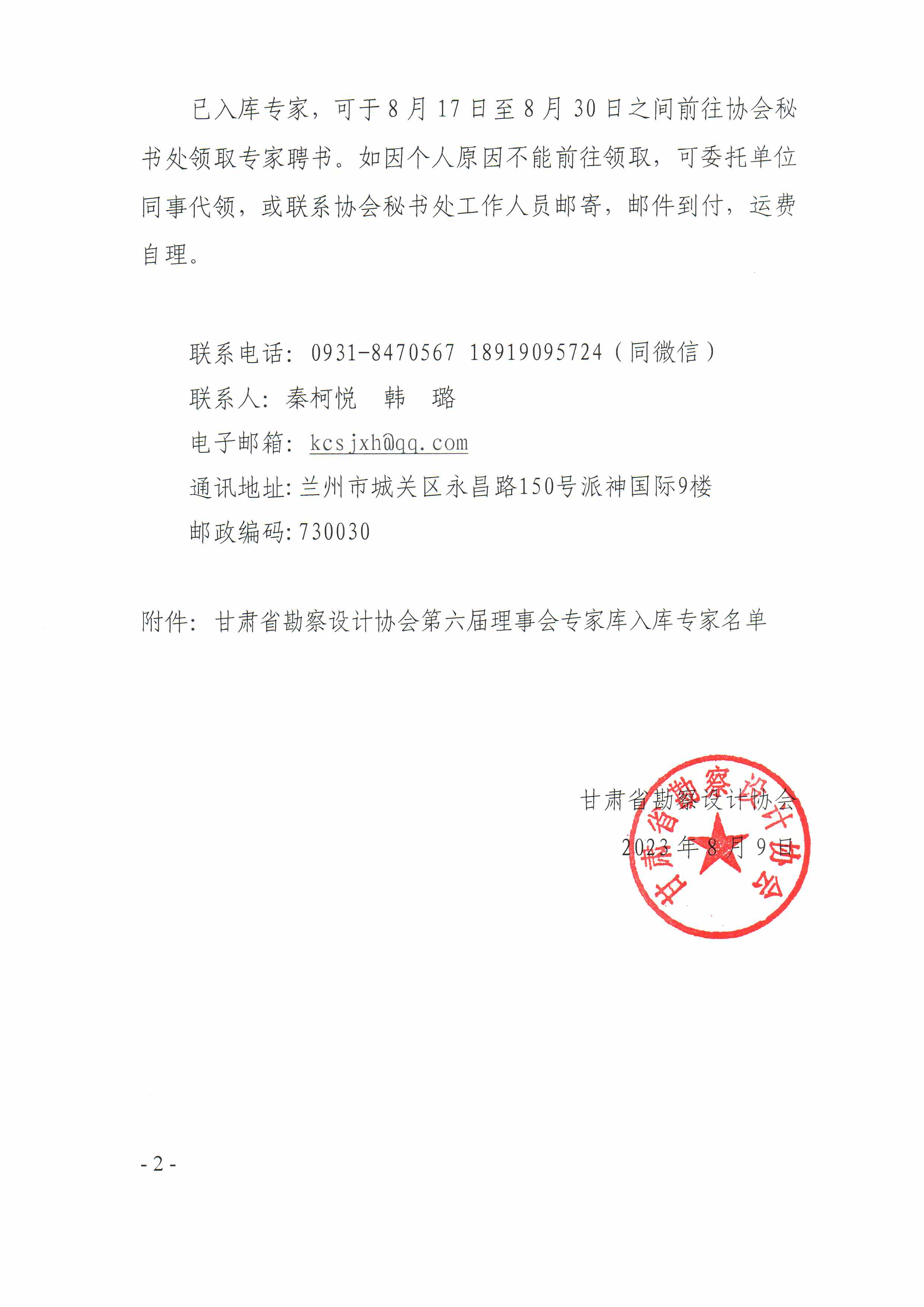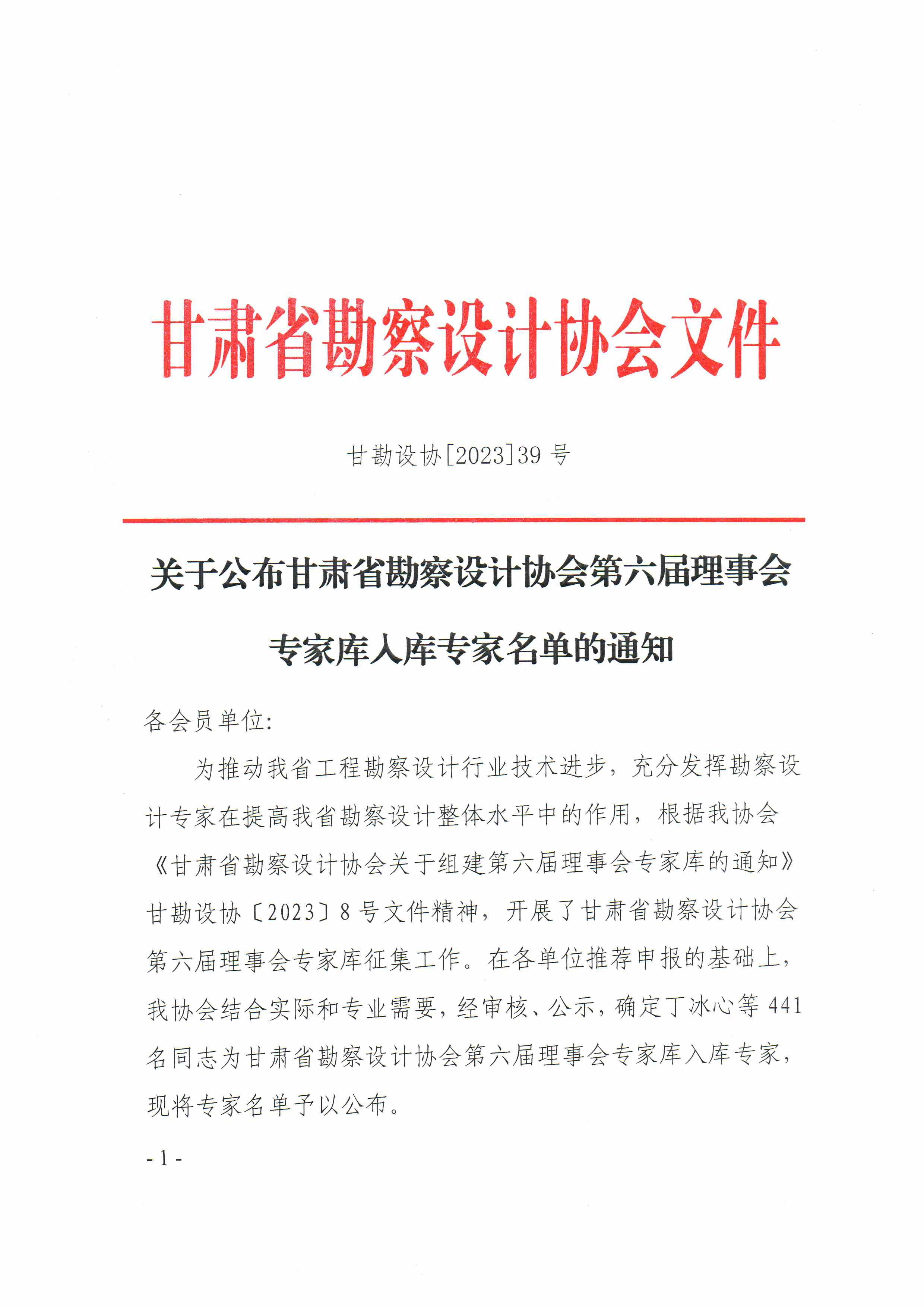 关于公布甘肃省勘察设计协会第六届理事会专家入库专家名单的通知.pdf