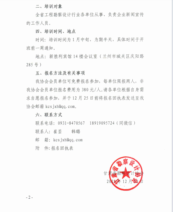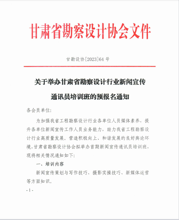 关于举办甘肃省勘察设计行业新闻宣传通讯员培训班的预报名通知