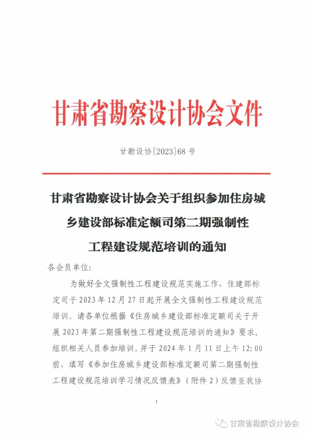 关注丨甘肃省勘察设计协会关于组织参加住房城乡建设部标准定额司第二期强制性工程建设规范培训的通知