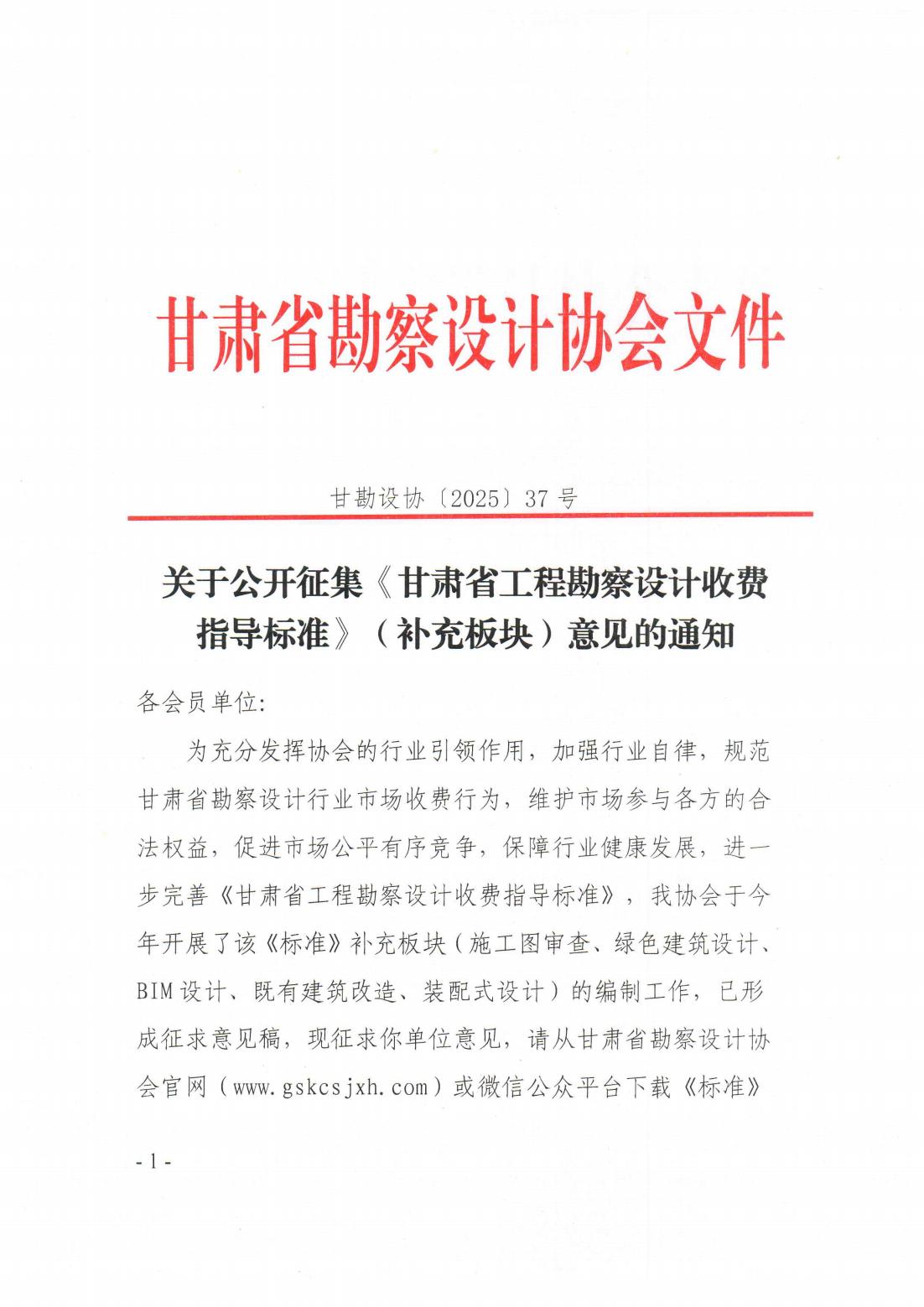 关于公开征集《甘肃省工程勘察设计收费指导标准》(补充板块)意见的通知