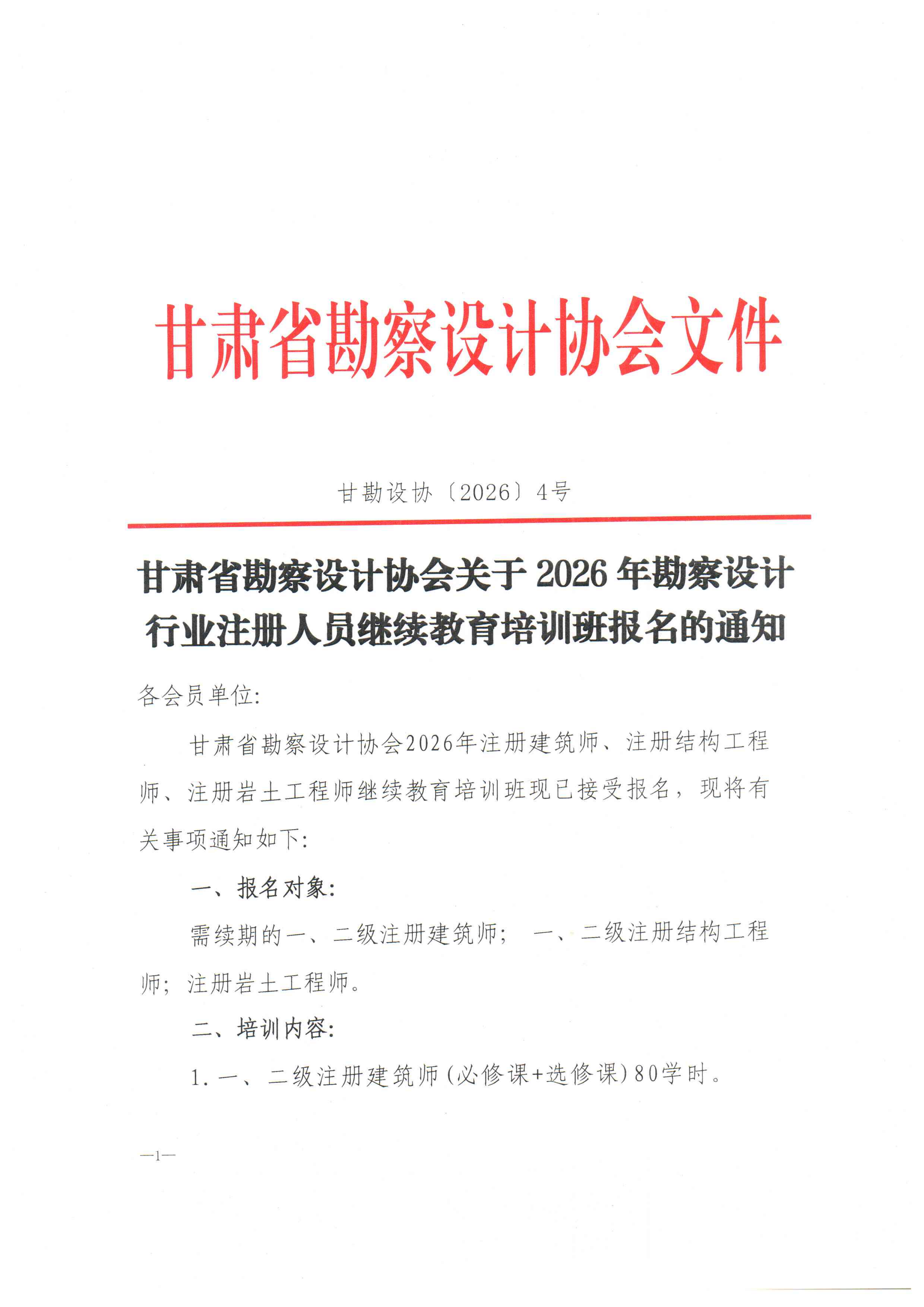 甘肃省勘察设计协会关于2026年勘察设计行业注册人员继续教育培训班报名的通知.PDF