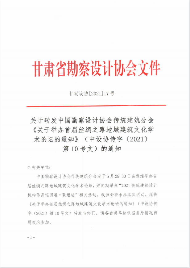 关于转发《关于举办首届丝绸之路地域建筑文化学术论坛的通知》(中设协传字(2021)第10号文)