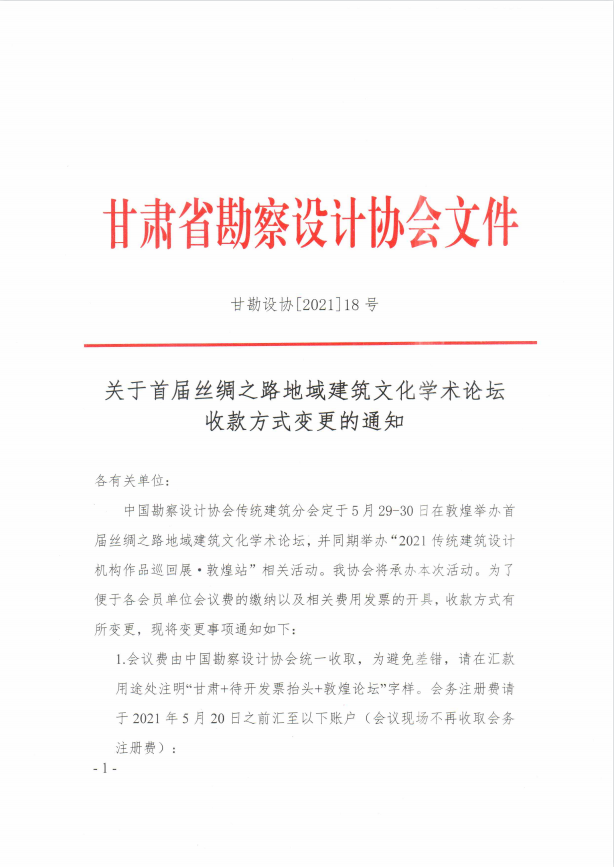 关于首届丝绸之路地域建筑文化学术论坛收款方式变更的通知