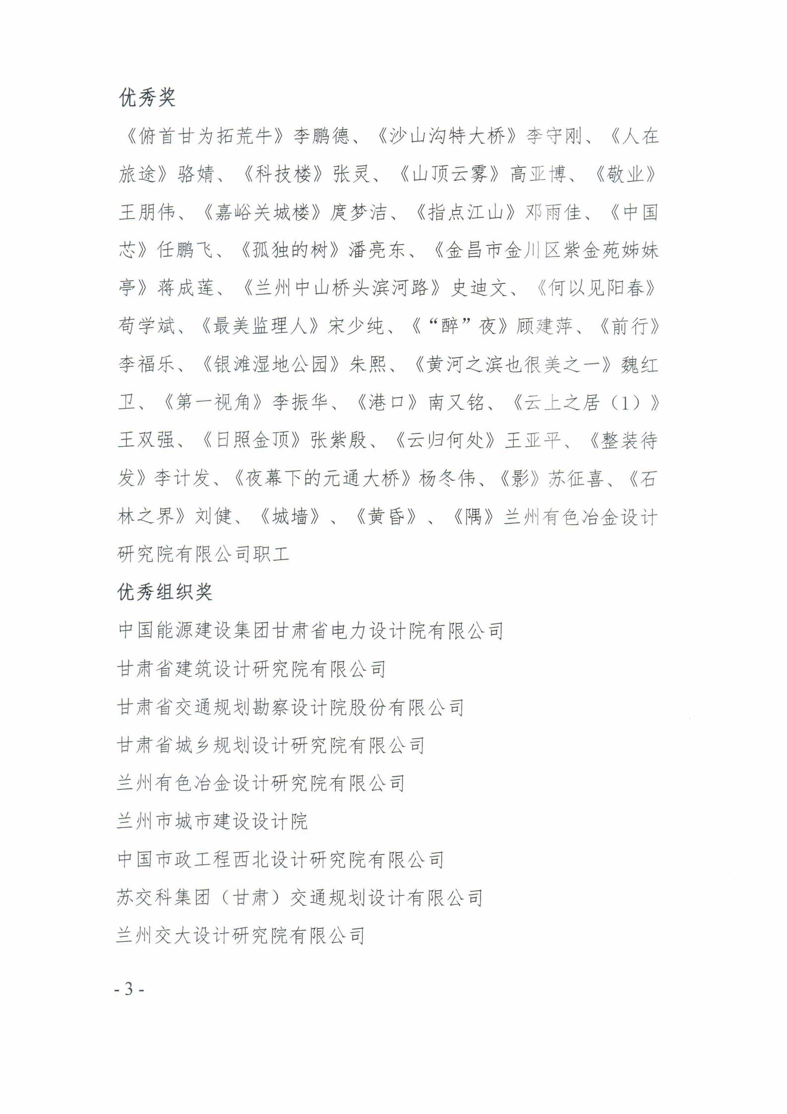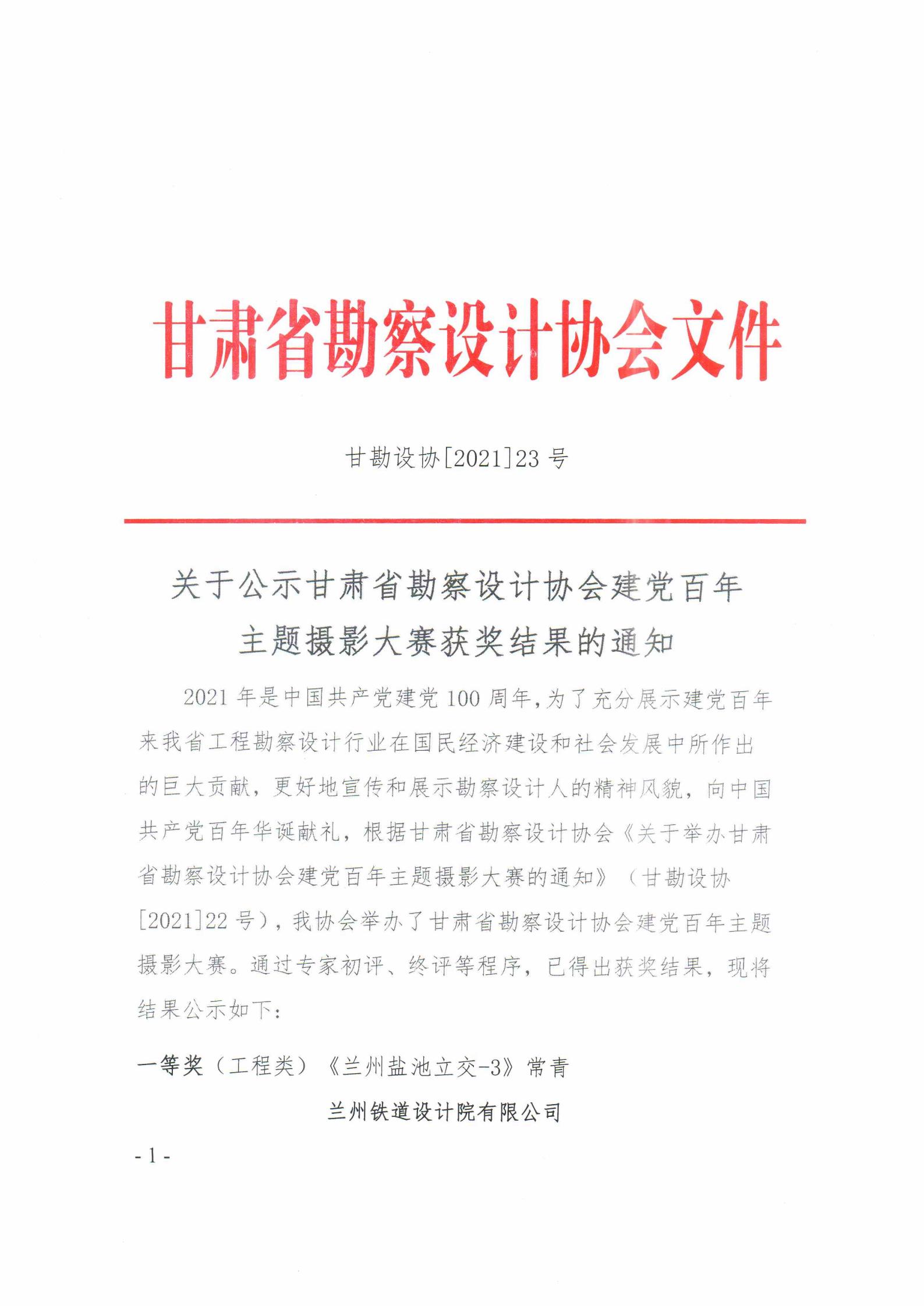 关于公示甘肃省勘察设计协会建党百年主题摄影大赛获奖结果的通知