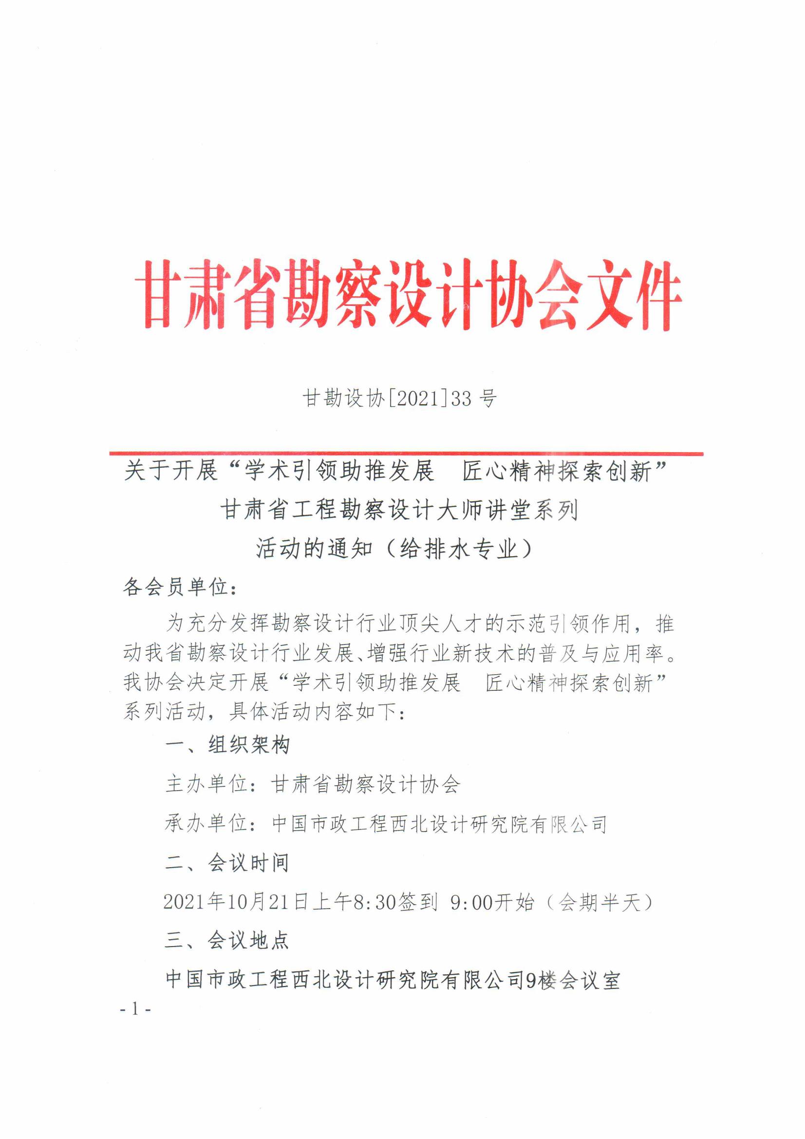 关于开展“学术引领助推发展 匠心精神探索创新”甘肃省工程勘察设计大师讲堂系列 活动的通知(给排水专业)